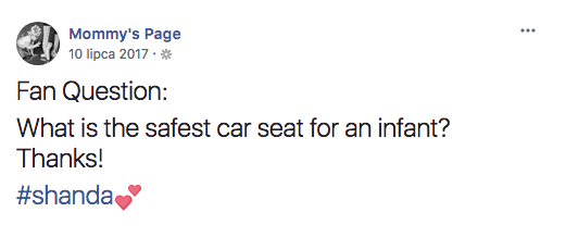 One of the attributes of a good car is its high safety level. No matter if you mostly drive alone or with a bunch of friends – effective airbags, seatbelts and other crash protection features are a must. Apart from that, sometimes our car need slight upgrades – such as baby accessories – to make the trip even more secure. Parenting blogs and fanpages are a thing these days – it means that if you’re a producer of children-related products or you just want to prove your products safety to the parents, you can set up a project based on keywords that would trigger alerts, like “baby”, “safety”, etc and when the question or concern occurs in the discussion, you can reply to it, straight from your SentiOne React panel.