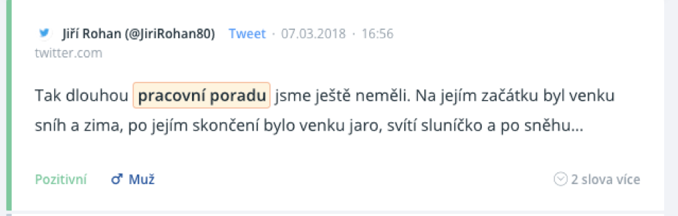 Týdenní přehled, který prezentujeme v tomto článku, je samozřejmě pouze souhrn kuriozit, který musíme brát jako nadsázku. Každopádně nám to poskytuje představu, jak bychom mohli tuto funkci SentiOne použít pro naše potřeby v businessu. Stačí vložit název naší značky či odvětví, ve kterém se pohybujeme a zjistit, které dny jsou ty nejvhodnější k osobnímu cílení komunikace s uživateli internetu, diskutujících na naše témata.