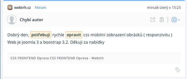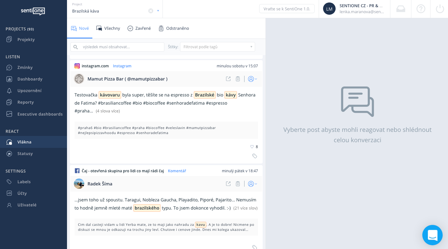 S nástrojem SentiOne React můžeme zákazníkovi odpovědět ihned po té, co publikuje svůj příspěvěk nebo odpověď na příspěvek delegovat.