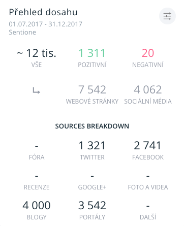 Také můžeme analyzovat sentiment zmínek, a tím tak určit oblíbenost kampaní či zkontrolovat jejich dosah.