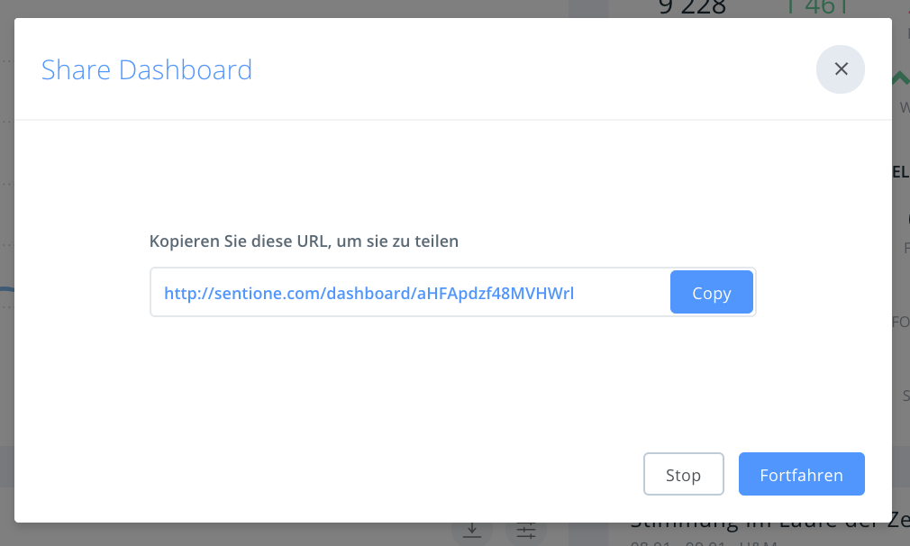 4. Eine weitere Neuerung bei SentiOne sind die Online Dashboards. Man hat ab sofort die Möglichkeit, mit nur zwei Klicks die Dashboards mit seinen Kunden oder Kollegen zu teilen. Selbstverständlich updaten sich die Dashboards automatisch.