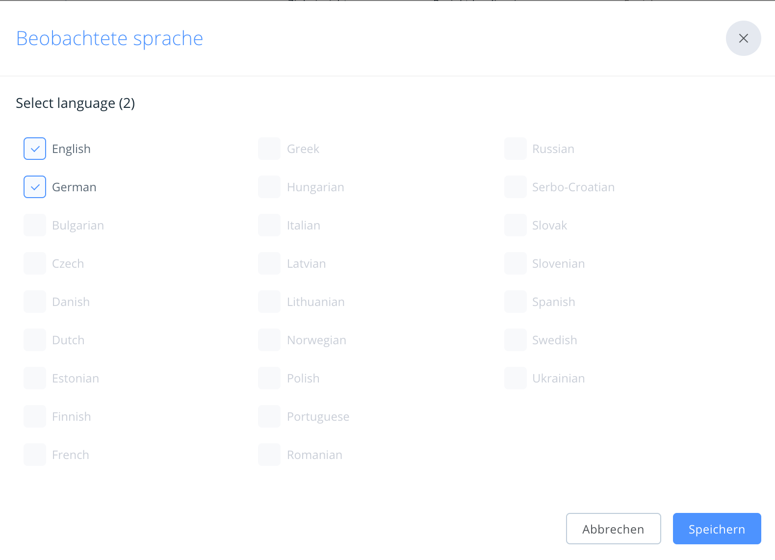 3. Weiter ist es möglich, während man ein Projekt erstellt, die Sprache zu ändern. Das hängt natürlich davon ab, in welcher Sprache man eine Marke oder ein Produkt beobachten und analysieren möchte. Speichern Sie Ihr Projekt und man erhält unbegrenzte Online-Erwähnungen und Äußerungen in der Sprache, die von Interesse ist.