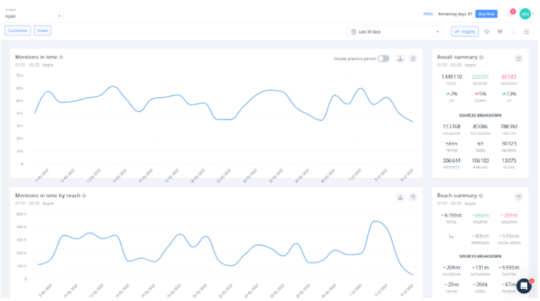 As a result, “brand monitoring tools” are the same services and platforms that you’d use to perform regular social listening. Our very own SentiOne Listen belongs to this family — and using it for monitoring brand mentions is one of its most common use cases!