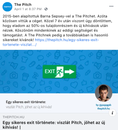 Személyes kedvencünk a The Pitch online marketing és SEO blog április elsejei írása, amiben Papp Gábor elmeséli, hogyan adta el a The Pitch 50%-os tulajdonrészét és hajtott végre sikeres exitet. A csattanót nem szeretnénk lelőni, így itt olvashatsz róla.