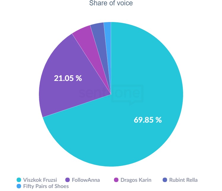Jellemző, hogy minden lány esetében drasztikus különbség van a pasi és a női követők összesített aránya között. Dragos Karinnal kapcsolatban 96%-ban csak csajok posztoltak és beszéltek online. Arányaiban a legtöbb pasit Rubint Rella közösségi média csatornája „mozgatta meg” – nem véletlen. A fitnessz, az edzés közelebb áll a férfiakhoz, mint a smink, a haj vagy az ágyon bájosan elrendezett szépségápolási csomag. Ugyanakkor itt is 83% – 17%-os nemi arányról van szó, természetesen a nők javára.