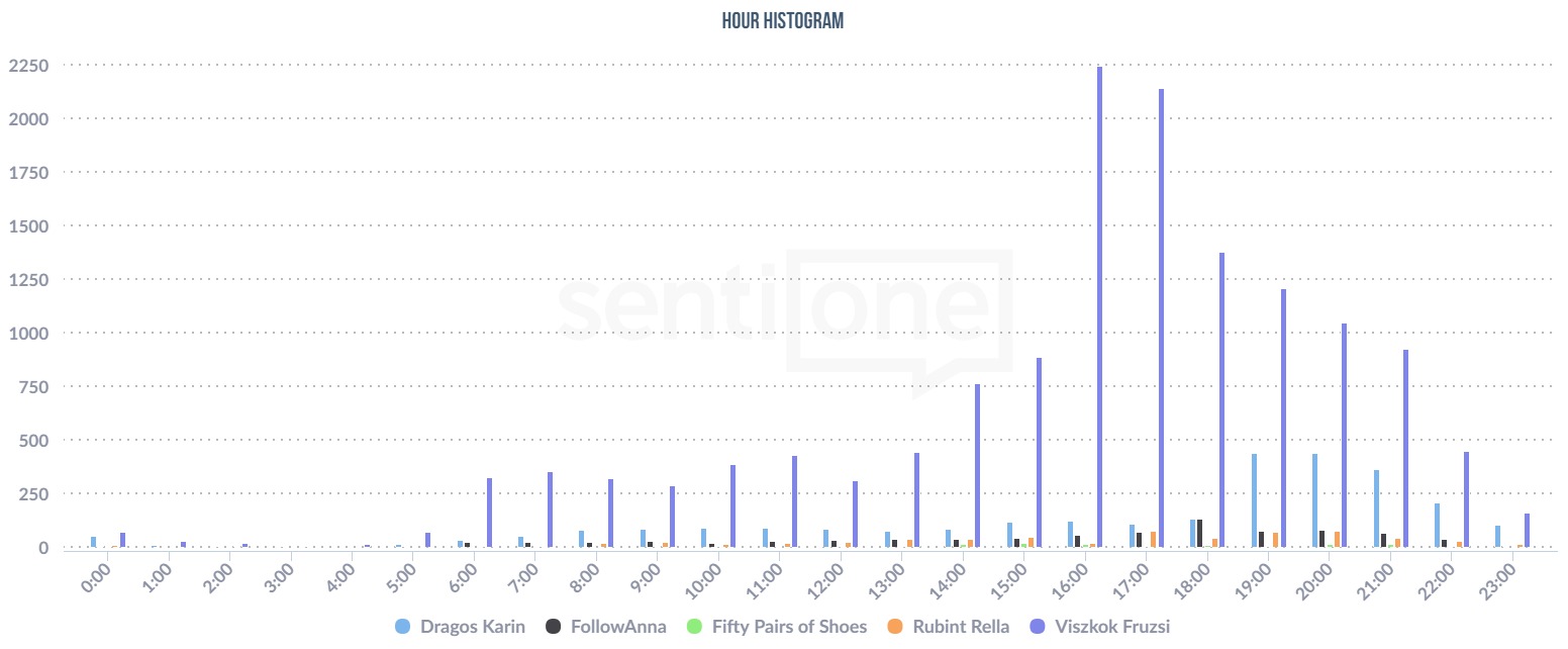 A legnépszerűbb napszak a délután 3, valamint az este 6 és 7 óra. Ekkor pezsgett leginkább a közösségi média a lányokhoz kapcsolódó beszélgetéstől.