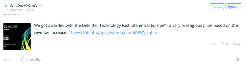 A szarkazmus, az irónia felismerése a beszéd írott formájában nem egyszerű. Főleg nem, ha a dekódolás folyamata automatizált. Éppen ezért érzelemfelismerő algoritmusunkat (is) folyamatosan fejlesztjük. A reakciók, emotikonok elemzésével így a semlegesnek észlelt tartalmak “kárára” pontosabban és nagyobb biztonsággal tudunk pozitív vagy negatív irányba dönteni.