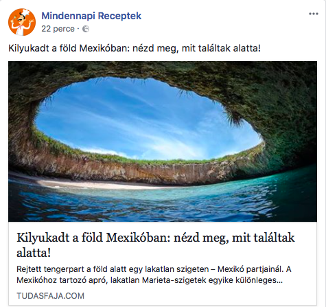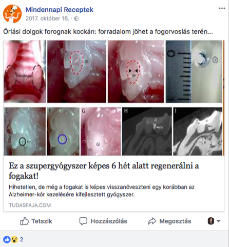És ezek bizony egymástól is veszik át a tartalmat, sokszor változtatás nélkül – támogatva és tágítva azt az online birodalmat, amelyet vállvetve építenek. (A képen: a Mindennapi Receptek Facebook oldalának egyik posztja a Tudasfaja.com weboldalról).
