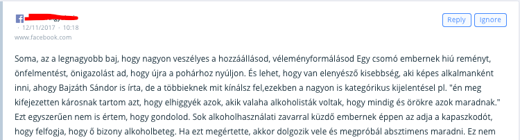 A második nagy online kommenthullám november 12-én ért partot Soma Mamagésa Facebook oldalán.