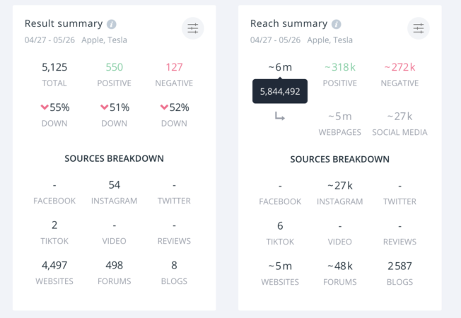 We understand the importance of time-saving tools for marketers, so we’ve added new sorting options to serve your needs better. ‘Likes,’ ‘Shares,’ and ‘Followers’ filtering options are available in both the Mentions menu and Analysis widgets.
