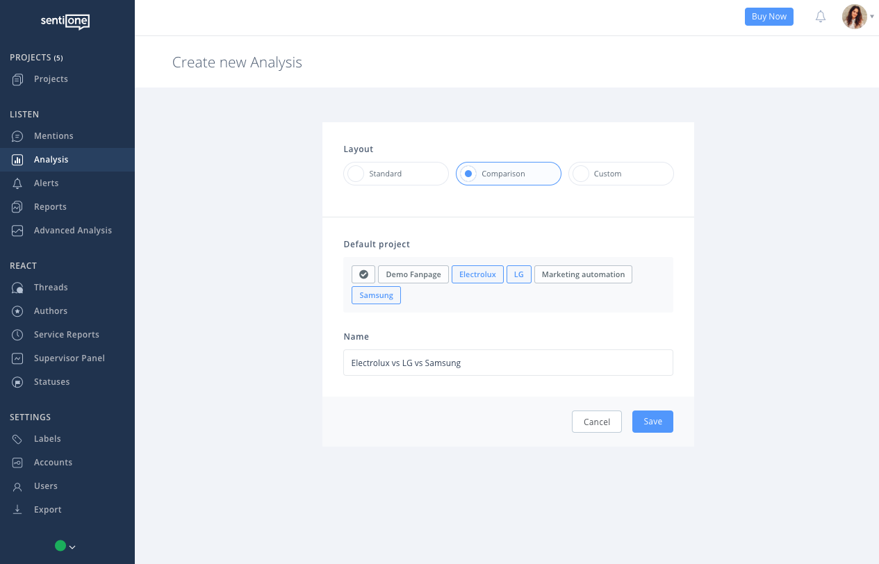 - Using Comparative dashboards you can check out all available comparative options and learn more about your competitors. You have this one new widget, particularly interesting when it comes to setting benchmarks, that shows Sentiment Share between projects.