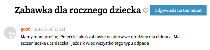 Zakup odpowiedniej, bezpiecznej i atestowanej zabawki dla dziecka może być wbrew pozorom sporym wyzwaniem dla dorosłego człowieka – zwłaszcza w epoce, w której sklepy z zabawkami potrafią mieć po kilka pięter i zalewać klienta morzem możliwości. Gdzie więc znaleźć coś odpowiedniego? Oczywiście w internecie! Warto mieć na uwadze, że blogi parentingowe są dziś opiniotwórczym medium – oznacza to, że jeśli jesteś producentem produktów dla dzieci, bądź po prostu chcesz dowieść bezpieczeństwa swoich produktów, w SentiOne masz możliwość ustawienia projektu opartego na słowach kluczowych wywołujących alert, takich jak “dziecko” czy “bezpieczeństwo” – kiedy powiązana dyskusja pojawi się gdzieś w internecie, będziesz mógł się w nią błyskawicznie zaangażować, odpowiadając bezpośrednio z panelu SentiOne React.