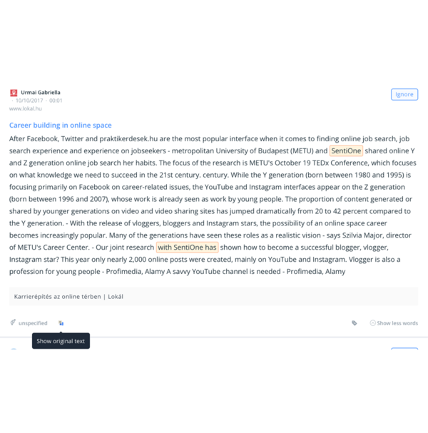 Warto w tym miejscu wspomnieć o możliwości monitorowania kilku rynków w jednym projekcie. Jeśli na przeszkodzie stoi tylko brak znajomości obcego języka, przypominamy! W SentiOne mamy, dostępną dla wszystkich użytkowników posiadających dostęp do więcej niż jednego języka monitorowania, funkcję automatycznego tłumaczenia wzmianek.