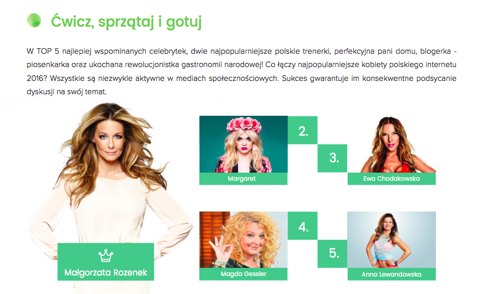 Ewa Chodakowska i Anna Lewandowska uplasowały się w pierwszej piątce celebrytek w polskim internecie 2016 roku. Pełen raport pobierzecie tutaj.