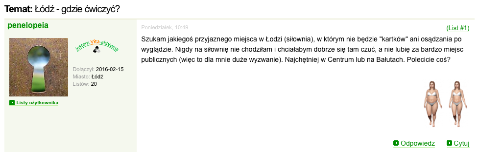 Jak wynika z naszych obserwacji, większość marek związanych z branży ogranicza się jedynie do własnych kanałów social media, niemal zupełnie ignorując pozostałe zakamarki internetu, a szkoda. Przy tak szybko rosnącym rynku (i co za tym idzie konkurencji) warto być krok przed innymi, wyłapując powiązane wzmianki i sprawnie na nie odpowiadając. Przykładów nie brakuje. Filtrując wyniki monitoringu internetu np. do forów możemy znaleźć wiele miejsc, w których pojawienie się naszego wpisu będzie bezcenne w kontekście np. liczby sprzedanych karnetów…