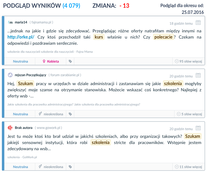 Oczywiście, przy takiej konfiguracji temat jest nadal dość szeroki i dotyczy wielu dziedzin – system wyłapał ponad 4000 wzmianek, które pojawiły się online w przeciągu ostatniego roku: