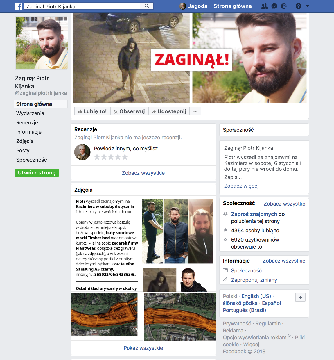 (jeśli ktokolwiek może pomóc w sprawie Piotra Kijanki – link tutaj: https://www.facebook.com/zaginalpiotrkijanka/)