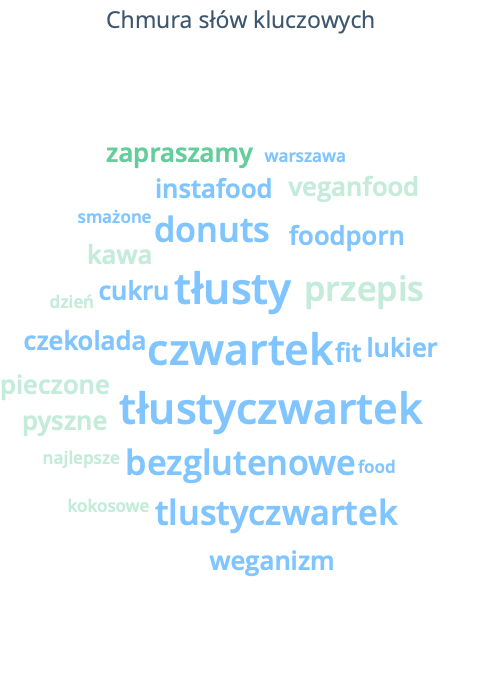 W 2018 roku najwięcej wzmianek na temat restauracji i kawiarni wegańskich pojawiło się na Facebooku, Instagramie oraz portalach internetowych (analigicznie do dyskusji o weganizmie). Jednak wśród top 10 źródeł wypowiedzi z 2018 roku, pojawiają się nie tylko portale społecznosciowe, ale między innymi tripadvisor.com czy turystykawp.pl. Spośród kilkunastu tysięcy recenzji i komentarzy blisko 25% ma wydźwięk pozytywny. Nie dziwi fakt, że o restauracjach wegańskich i wegańskich najczęściej w sieci dyskutują kobiety. Poza lokalami coraz częściej na mapach gastronomicznych znaleźć można kawiarnie z wegańską ofertą. Badanie wykazało, że dyskusje o kawiarniach wegańskich zawierają liczne słowa, których znaczenie niejeden z nas musi googlować. Tak też stało się w moim przypadku… W parze z kawianiami pojawiły się słodycze. Projekt dotyczący wegańskich ciast w pierwszym półroczu 2019 roku liczył ponad 5 tysięcy wzmianek, wśród których w chmurze słów kluczowych królował TOFURNIK (to słowo wprawiło mnie w chwilę zdumy) oraz wegańskie pączki.