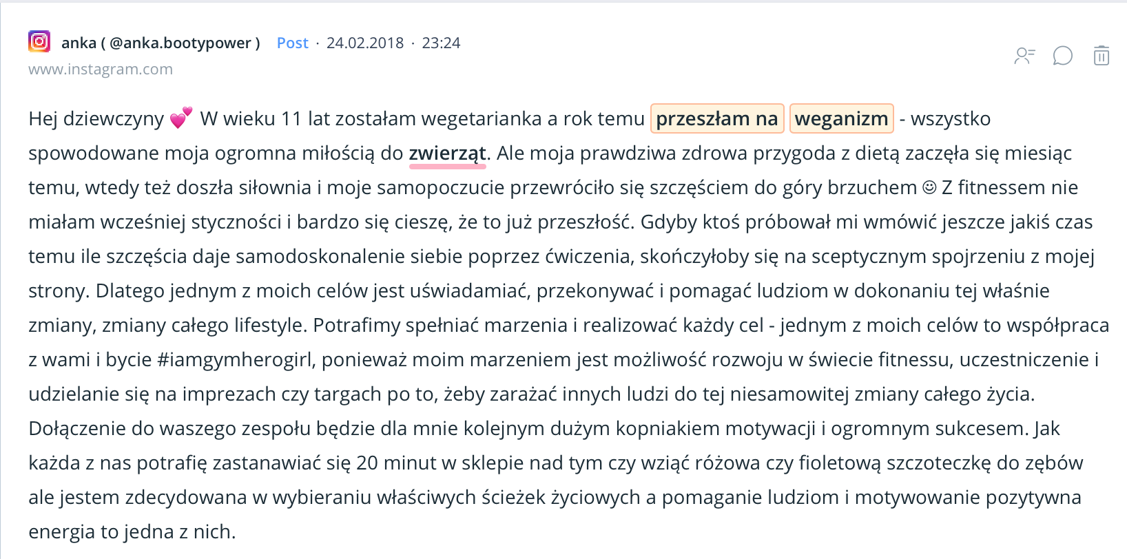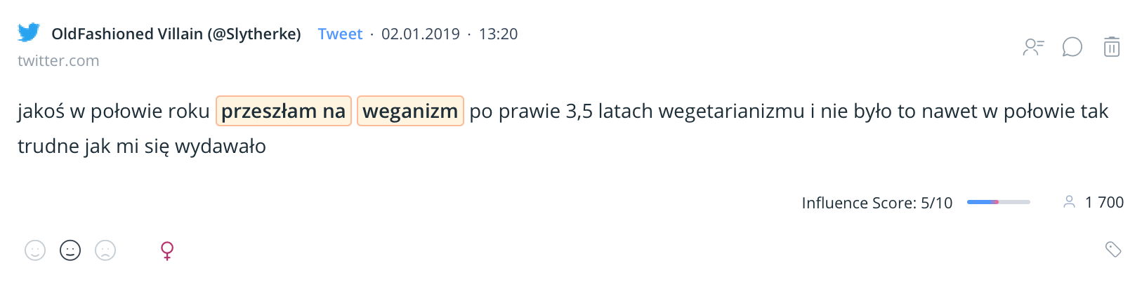 Donald Watson stworzył termin „weganizm” w 1944 roku. Od tego czasu zainteresowanie weganizmem rozwija się nieprzerwanie. Wciągu 5 lat liczba wzmianek na temat wykuczania produktów odzwierzęcych wzrosła o kilka tysięcy procent. Weganizm przestał być tylko dietą wykluczającą mięso, a zaczął całą ideologią. Najwięcej na ten temat publikują w Polsce kobiety, a trzy czwarte wspomnianych dyskusji toczy się w mediach społecznościowych. Ponieważ konfiguracja projektu w Sentione wymaga dokładnego predefiniowania badanego tematu, mój wpis porusza ledwie kilka aspektów związanych z dyskusjami na temat weganizmu w sieci. Jestem przekonana, że różne aspekty związane z byciem WEGE możemy analizować w nieskończoność.
