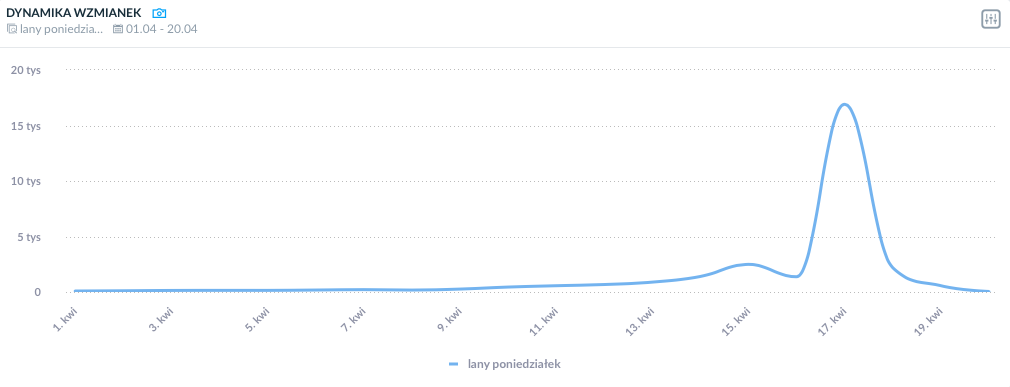 Dynamika wypowiedzi w czasie, hasło “Wesołego Alleluja!”, widok z panelu SentiOne