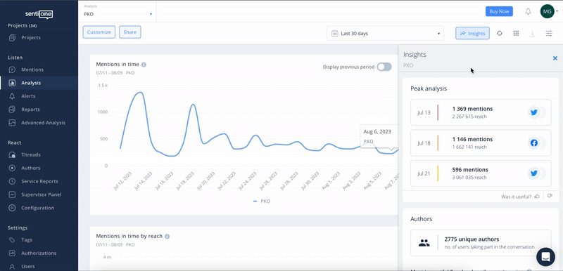 - AI summary: Experience the convenience of AI summary availability for the “(…) in time” charts within the Analysis module. Now, when navigating through Analysis and requiring a summary for a specific peak or time range, you no longer need to switch to the Mentions module to access the AI summary.