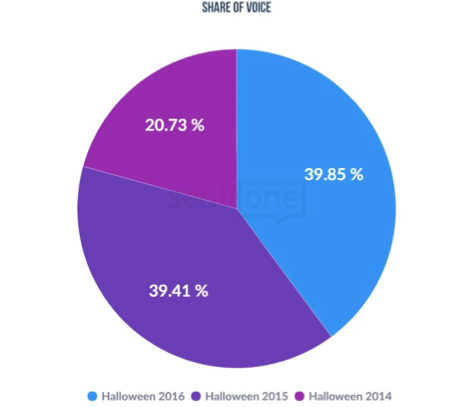 In 2014 Facebook was still the number one platform, while in 2016 it had a huge fallback representing only a poor 20% of the total social communication with regard to the Halloween make-up topic.