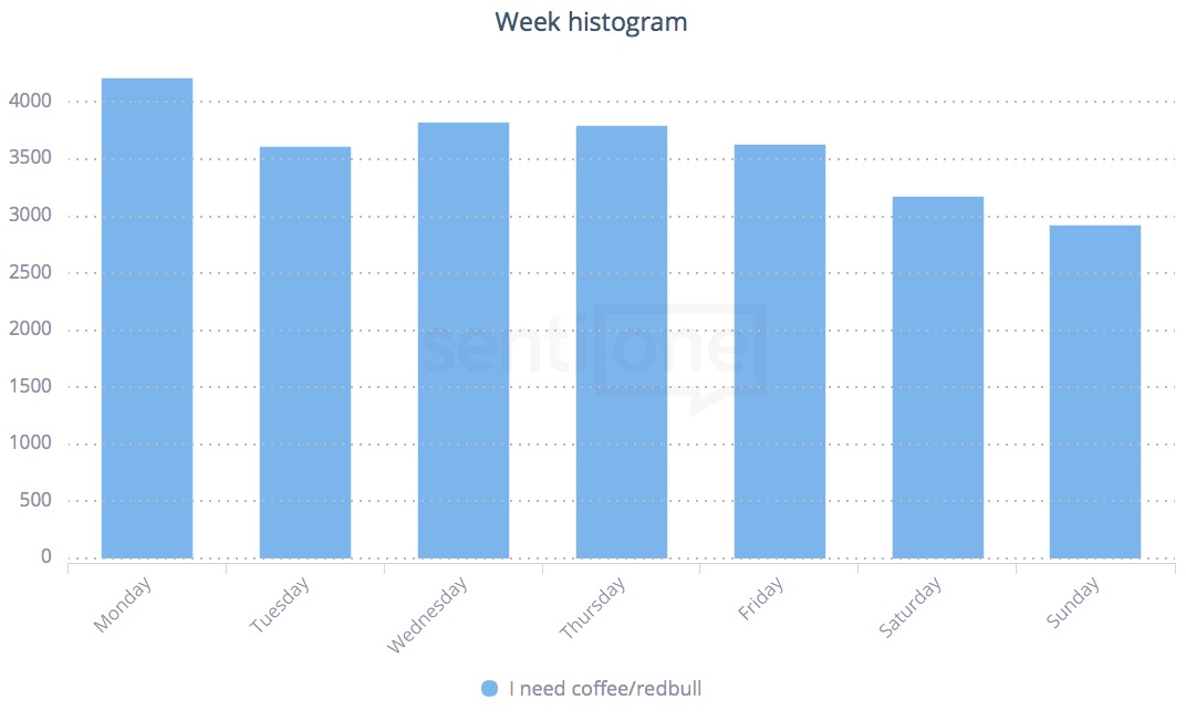 Thanks to the new feature in SentiOne – Week Histogram – we checked what people share online each day of the week. Assuming that what we write about in the web mirrors our real life, here is how the week of an average person could look like these days: