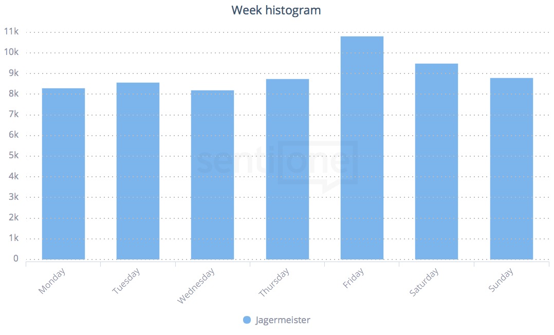 It’s not a surprise that Friday and Saturday are connected with some refreshments. Take a look at one of the top alcohol brands’ results – Jagermeister: