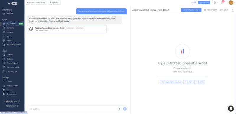 In the September update, we’re focusing on new capabilities of the AI Assistant as well as improvements to our platform and API, designed to make daily work and data analysis more efficient. At SentiOne, we never stand still – we continuously develop our tools so your brand can operate faster, more accurately, and more effectively. The September update is another step toward intelligent automation and real-time data analysis.