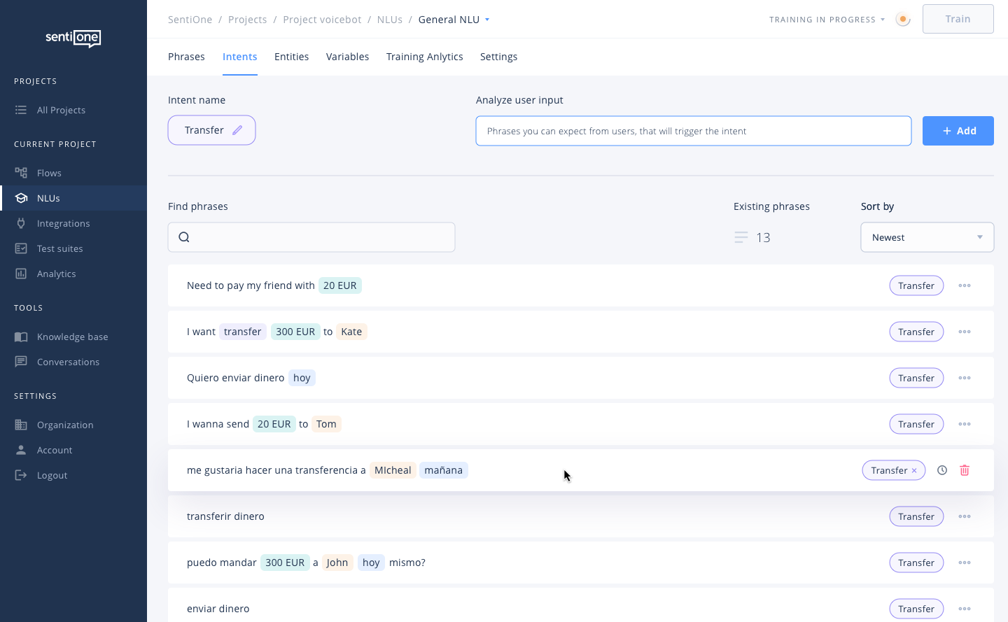 Entrena algoritmos NLU con facilidad