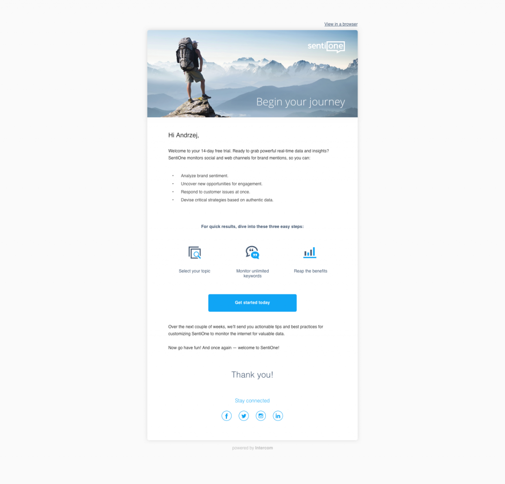 - Onboarding emails – in their first days, try to be a good companion to your new user and share life-tested advice.