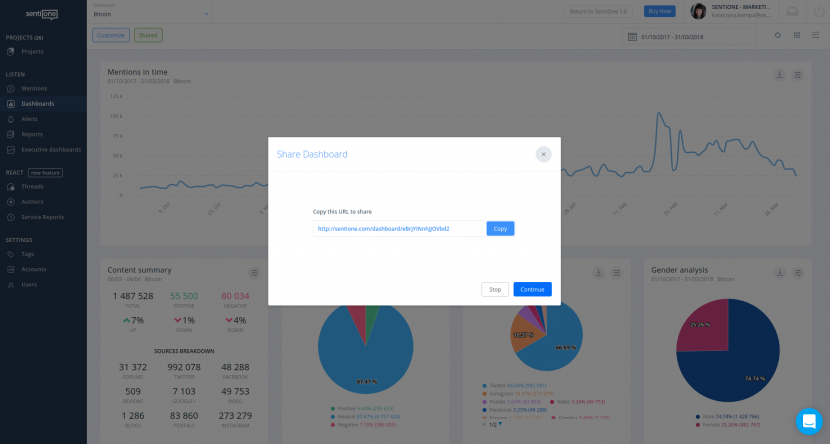 Have you ever dreamed of sharing the results of your online listening? After project configuration, analysing the data, you may want to show it to the wider public. Now you can do it! I’m going to just give you a quick teaser of how it looks like: