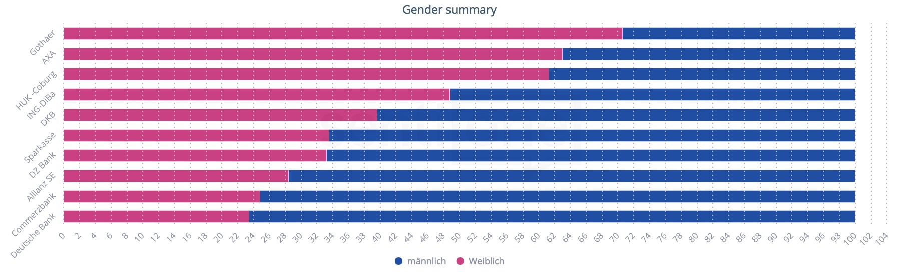 Interessant erscheint die Geschlechterverteilung. Deutlich mehr Frauen sprechen über die Gothaer, AXA und HUK-Coburg.