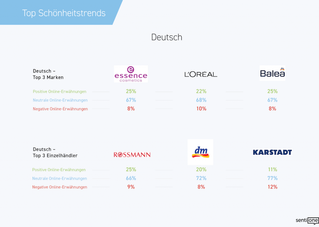 SentiOne hat einen umfassenden Bericht über die Kosmetikindustrie in Europa erstellt. Der Schwerpunkt lag hierbei vor allem auf dem Trend-Thema Gesichtspflege. Dabei haben wir öffentliche Aussagen (zum Beispiel Posts, Kommentare, Online-Artikel), die im Internet publiziert wurden analysiert, und uns vor allem auf einen Vergleich zwischen dem deutschsprachigen Raum und englischsprachigen Ländern konzentriert. Wieso genau die Kosmetikindustrie?