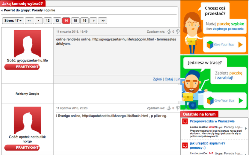 Erre az oldalra például az alábbi lengyel fórumra beszórt linkek (Online rendelés online) vezetnek át.