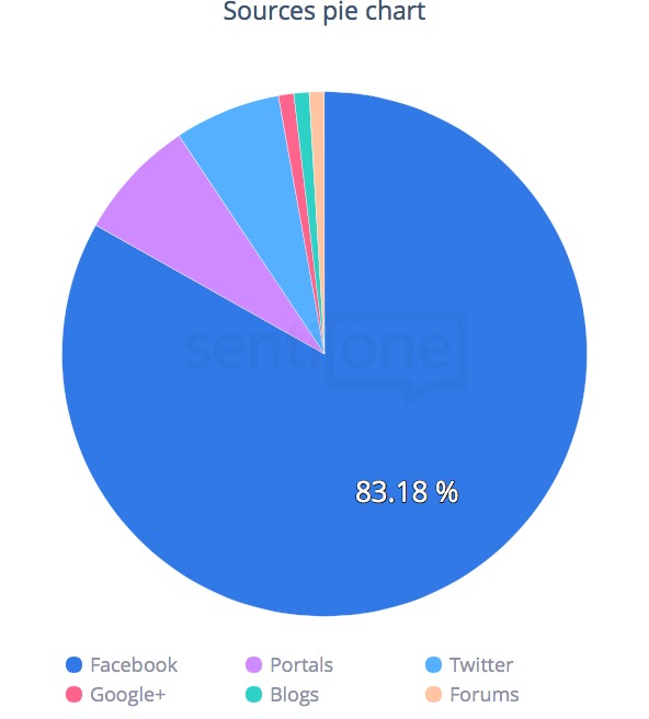 Ugyanezt a kulcskifejezést és időintervallumot beállítva a SentiOne 107 találatot mutat. Facebookról 89-et, Twitterről 7-et és 8 bejegyzést a weboldalakról.