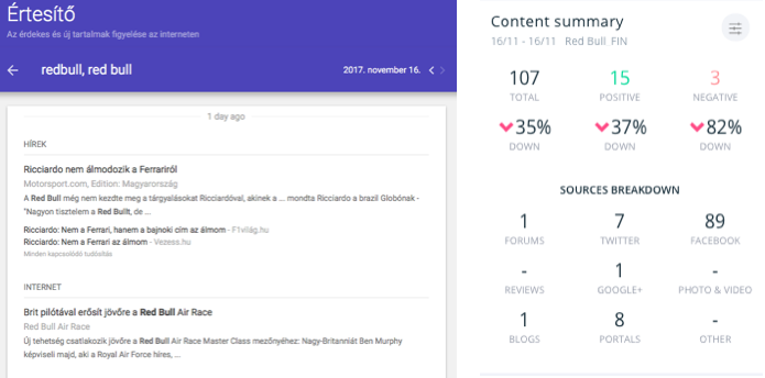 …a SentiOne kontextussal együtt gondolkozik. Hiszen, ha szóba kerül a Red Bull online, akkor egyáltalán nem biztos, hogy a cikkre, posztra érkező kommentekben a felhasználók ismét megemlítik a márkanevet. Az online listeningen keresztül a teljes párbeszédet megismerheted, azaz végigkövetheted a beszélgetés ívét. Hiszen nem a márkatartalom, hanem az olvasók reakciói építik a történetet.