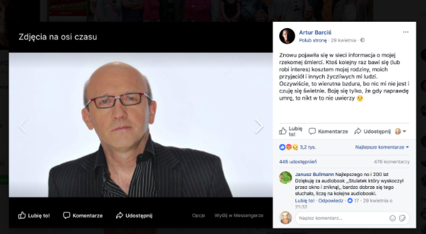 Można było przeczytać między innymi o wypadku Kuby Wojewódzkiego czy zgonie Andrzeja Grabowskiego. Jednak Artur Barciś to rekordzista – pochowano go aż dwa razy.