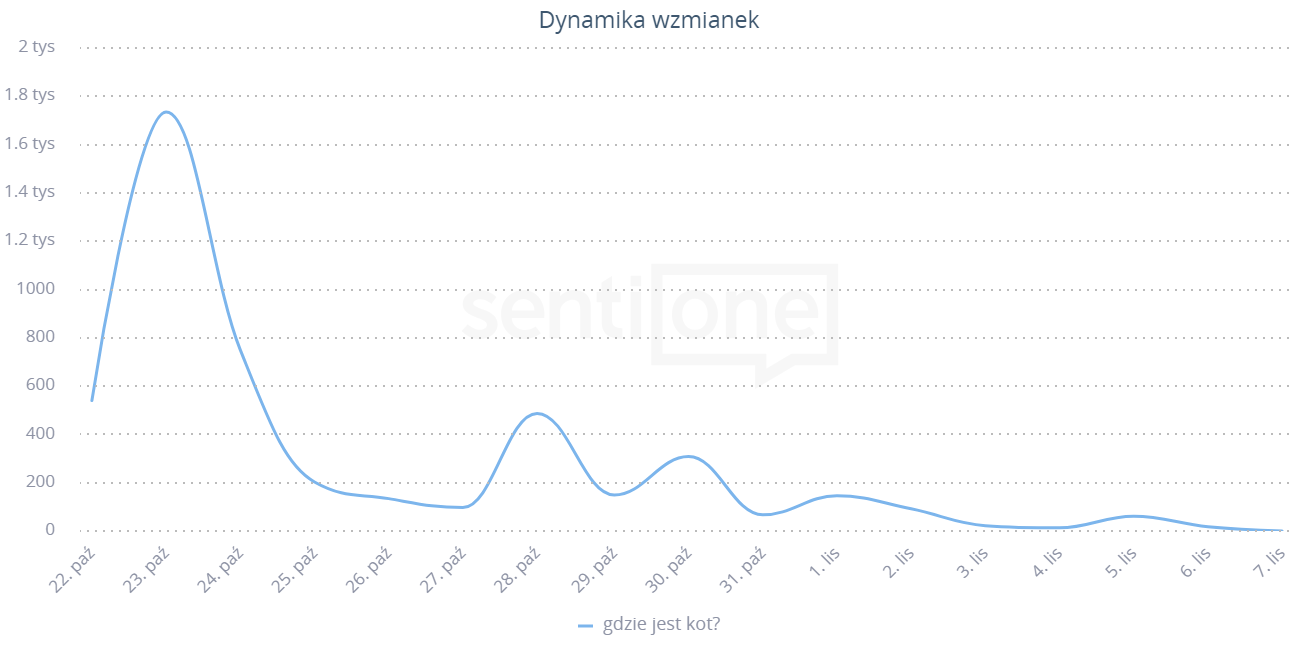 Chociaż w ciągu tych dwóch tygodni poszukiwań kota napisano niecałych 5 tysięcy wzmianek, ich zasięg sięgnął ponad 8 milionów odsłon. Za sprawą mediów ogólnopolskich, o kocie napisała Gazeta Wyborcza, Radio Zet, Dzień Dobry TVN, Wprost i inne wysoko zasięgowe źródła, jak również zasięgowe profile społecznościowe (m.in. Fundacja Viva!). O kocie pisali internauci z całej Europy – od półwyspu Skandynawskiego po Izrael i od Półwyspu Iberyjskiego po Ukrainę.