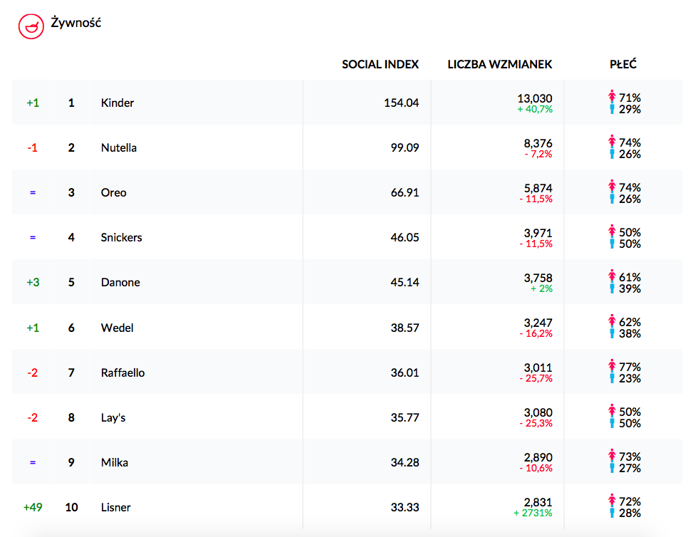 W kategorii “Żywność” nadal górą słodycze, jednak na podium mała zmiana – palmę lidera od Nutelli przejął Kinder. To oczywiście za sprawą Świąt Wielkanocnych, podczas których chętnie obdarowywaliśmy się czekoladowymi jajkami-niespodziankami. Ale nie tylko. Kinder swoją pozycję w tym miesiącu zawdzięcza także sile Twittera, a mianowicie dużej liczbie retweetów tego zdjęcia: