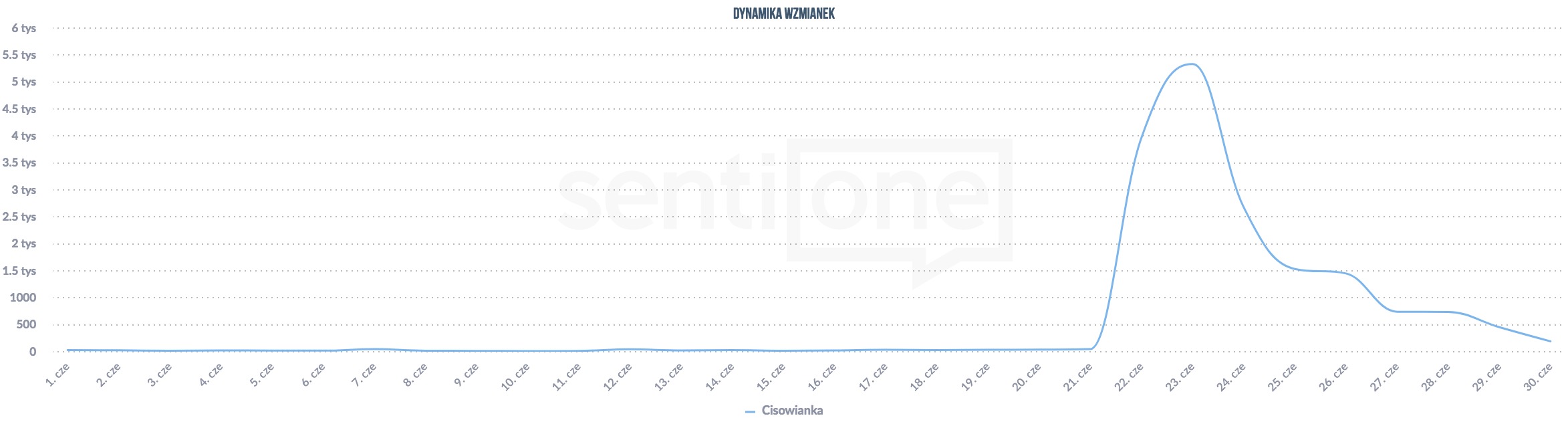 Cisowianka była bowiem w sieci obecna dość rzadko, a już napewno nie była przedmiotem burzliwych dyskusji. W czerwcu natomiast na jej koncie zanotowaliśmy blisko 20 tysięcy wzmianek!