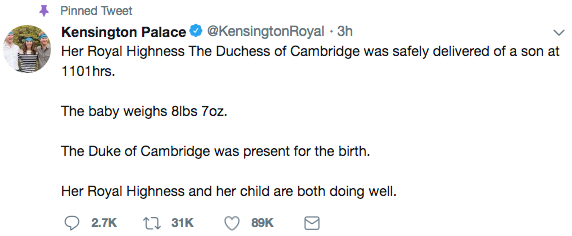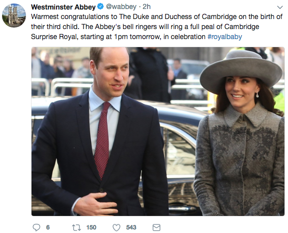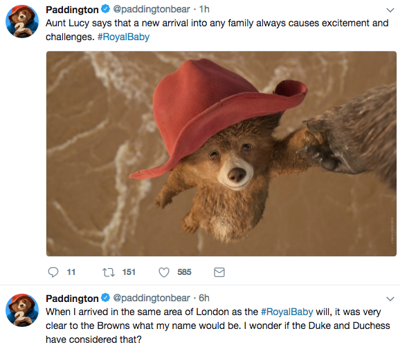 A wide stream of congratulations, wishes and comments began to overflow social media from the moment the birth of the baby was announced. Starting from Westminster Abbey, ending on Paddington Bear!