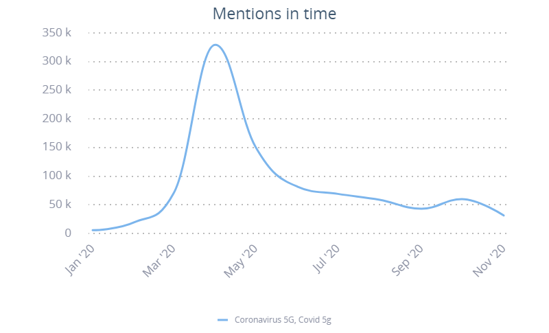The first conspiracy theories started almost immediately after the news of the virus were disclosed. These ranged from unfounded claims that the virus was engineered as a bioweapon in a Chinese laboratory (it wasn’t). This theory found some “success” in march, but quickly dropped off – by the latter part of the year, it lost most of its appeal.